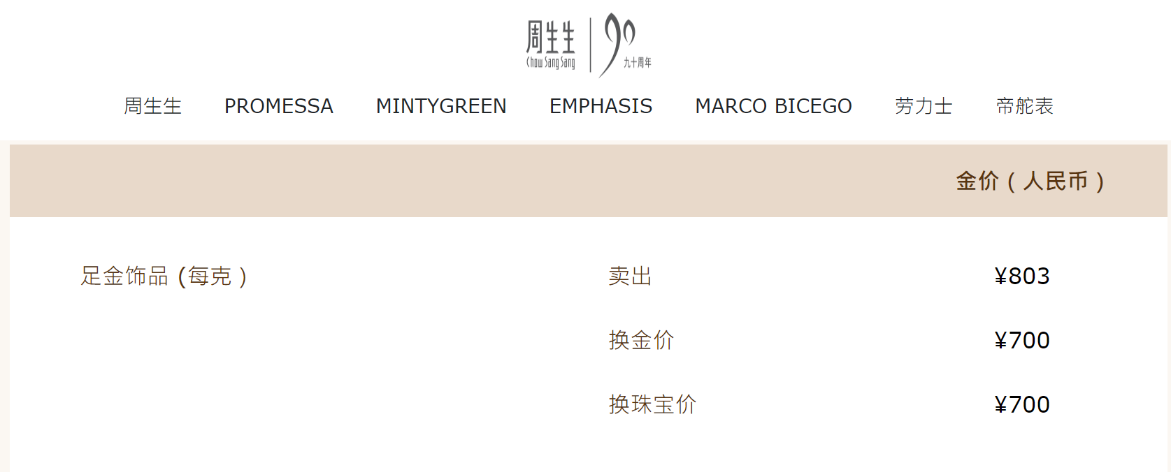 今日,国内多家知名品牌的金饰价格纷纷突破800元大关,其中周六福金饰的价格更是飙升至每克826元,周大福、六福珠宝、老庙以及周生生等品牌的金饰价格也紧随其后,均超过了800元每克的水平。