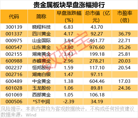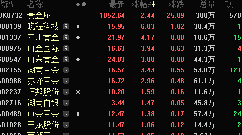 1月3日,贵金属板块早盘大涨,截至收盘,行业指数上涨2.86%。其中,晓程科技领涨,涨幅达到6.83%,今年以来累计涨幅已达9.32%。此外,四川黄金、山金国际、山东黄金、湖南黄金等个股涨幅均超过3%。值得注意的是,这已是贵金属板块连续第二个交易日走高,前一日行业指数同样上涨2.25%。