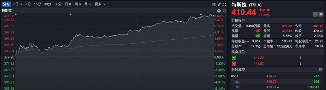 在个股方面,特斯拉股价大涨超过8%,创下了自去年11月12日以来的最大单日涨幅。这一强劲表现主要得益于特斯拉2024年国内销量的历史性突破。数据显示,特斯拉去年12月在国内的销量达到了8.3万台,环比增长12.8%;全年销量更是超过了65.7万台,同比增长8.8%,均创下了历史新高。特斯拉上海超级工厂在去年12月的交付量也达到了9.37万辆,全年交付量更是高达91.6万辆,占特斯拉全球交付量的50%以上。