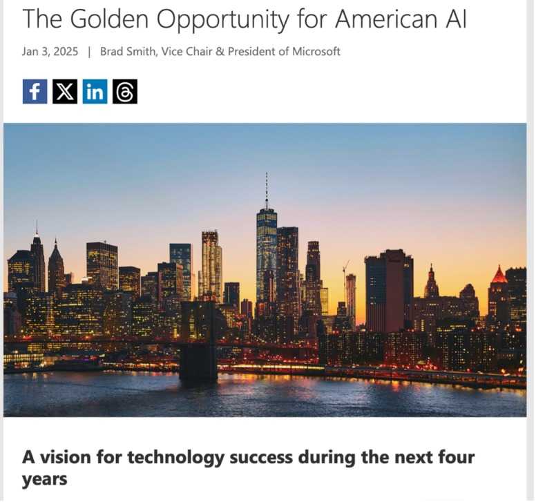 微软计划投资800亿美元建设AI数据中心,升级AI竞赛。本周美国市场将迎来非农报告等数据发布,CES 2025科技展也将举行。此外,马斯克介入英国政治,韩国总统尹锡悦遭逮捕令。