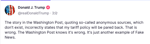 特朗普批评《华盛顿邮报》发布不实信息,指出其为假新闻。此前该报报道特朗普团队正研究对各国关键进口商品实施差异化关税的计划,引发市场广泛关注。