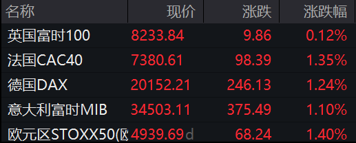 与此同时,欧洲股市也传来好消息,德国DAX指数上涨1.24%,英国富时100指数也实现了0.12%的涨幅。