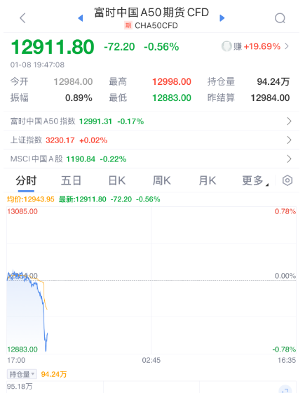 1月8日晚间,全球资本市场经历了一场突如其来的跳水行情,引发了广泛关注。欧美股市与富时中国A50期货指数在同一时间段内均出现了显著的下跌。