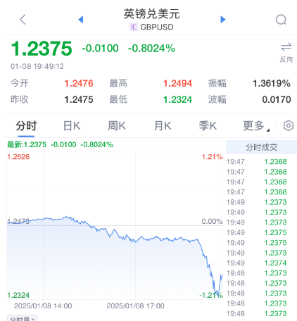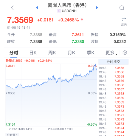 在此期间,美元指数短线冲高,导致非美货币普遍承压,英镑更是一度暴跌超过1%,创下自2024年4月以来的新低。人民币汇率同样受到影响,下跌接近200点。