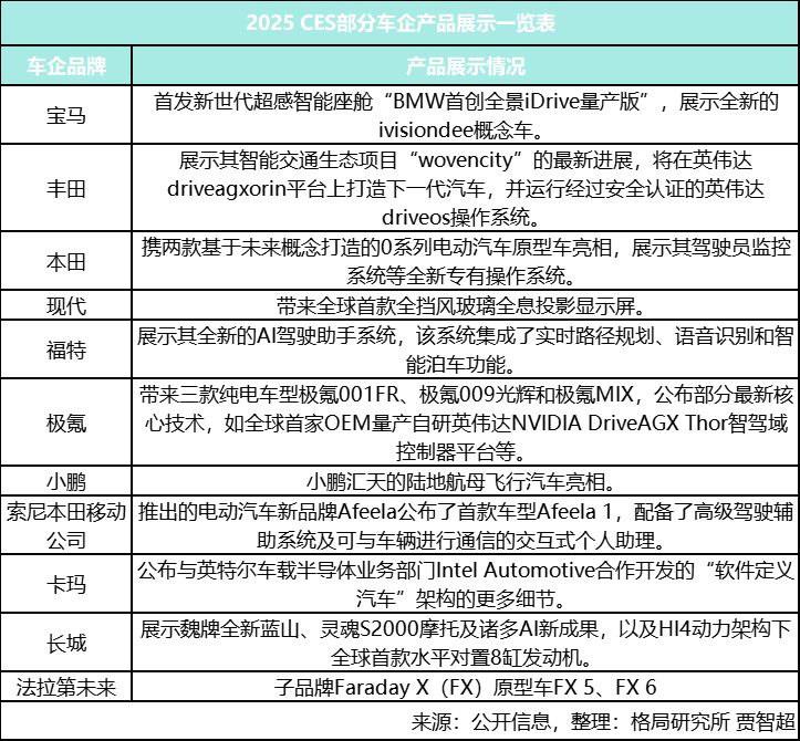 格局研究所联合创始人、汽车首席观察员贾智超也表示,中国车企参加CES不仅展示了制造能力和创新实力,还能与其他企业相互交流学习,共同提升中国汽车行业的整体技术水平。