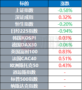 欧洲股市表现各异,德国DAX30指数微跌0.06%,而英国富时100指数、法国CAC40指数和欧洲斯托克50指数则分别上涨0.83%、0.51%和0.43%。