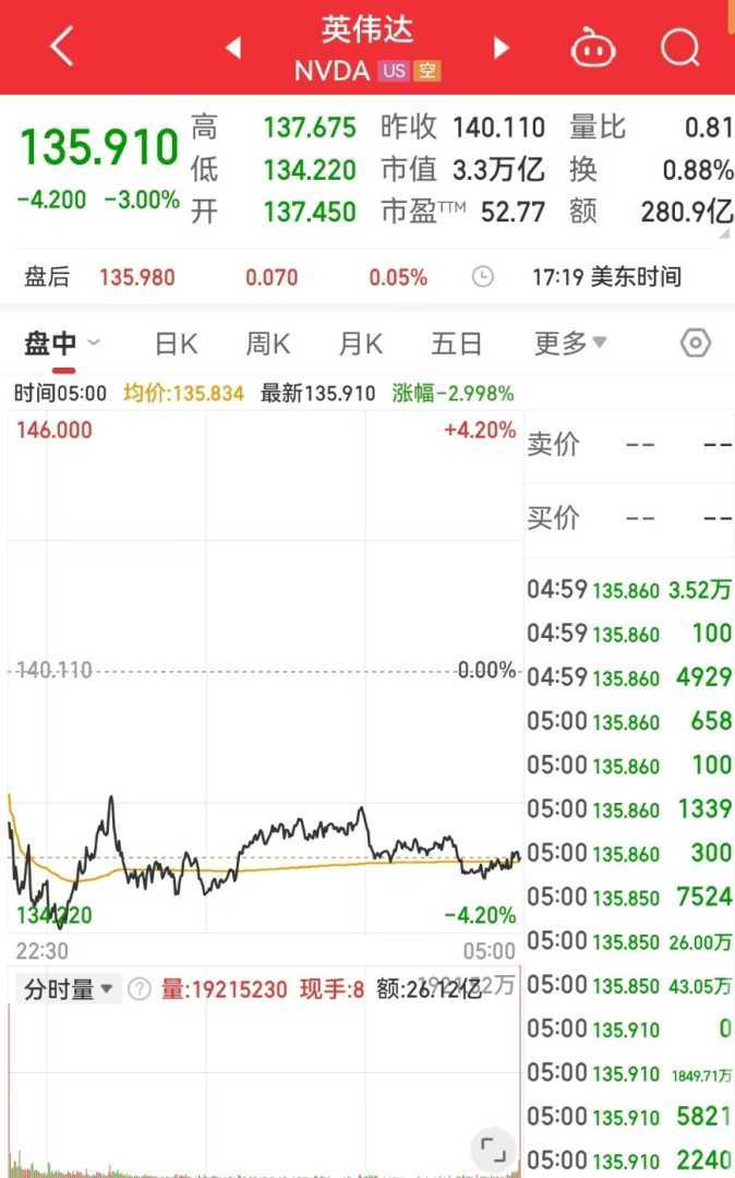 科技巨头方面,科技七姐妹中多数下跌,英伟达下跌3%,苹果下跌2.41%,亚马逊下跌1.44%,特斯拉微跌0.05%,微软下跌1下跌.32%,谷歌A0.98%,仅Meta上涨0.84%。