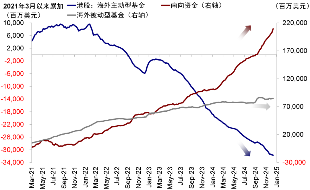 2025年初港股市场经历回调,中美利差扩大加剧市场压力。特朗普上任后关税政策成新挑战,但提供配置时机。整体市场未摆脱震荡,建议短期谨慎,低迷时积极介入,亢奋时适度获利。