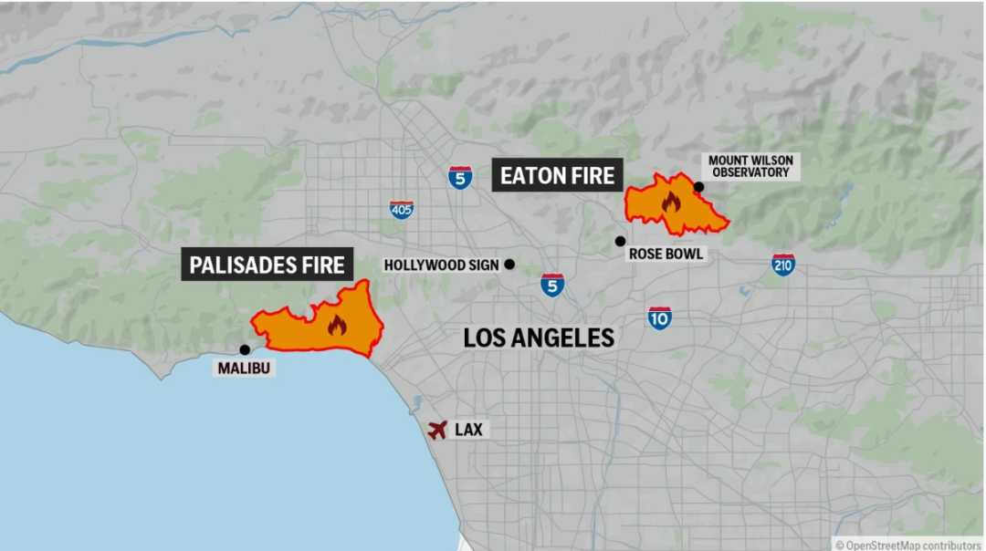 目前,洛杉矶火情最为严重的伊顿火区和帕利塞德火区仍难以控制。其中,帕利塞德斯大火仅得到11%的控制,伊顿大火也仅得到27%的控制。这两个火区合计覆盖面积近153平方公里。