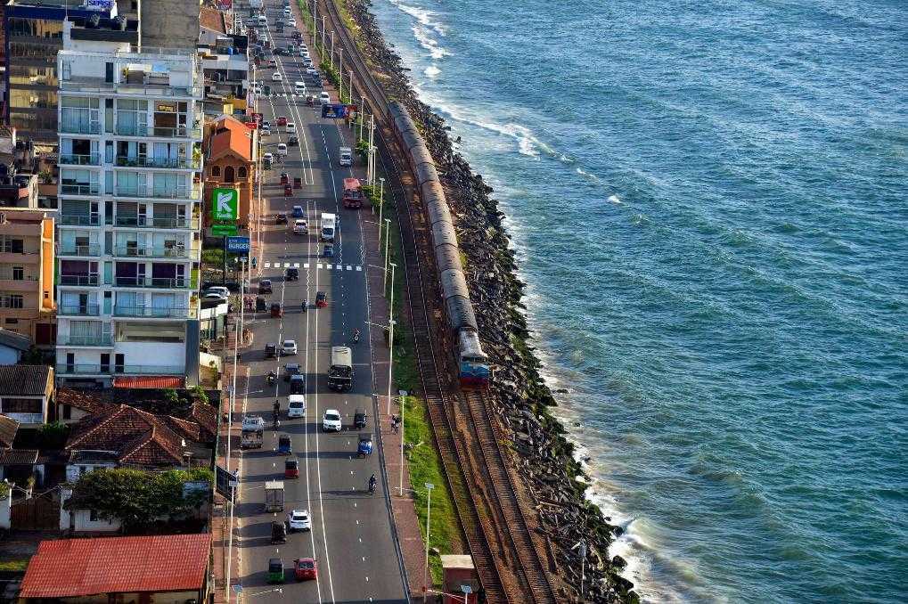 这是2024年12月23日在斯里兰卡首都科伦坡拍摄的海边小火车。新华社发(加扬·萨米拉摄)