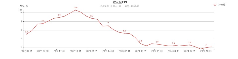 分析人士指出,欧元区经济临近衰退边缘,同时在债务压力下财政政策难以有太大宽松空间,这是引发市场避险情绪、造成欧元走低的主要原因之一。根据欧盟统计局数据,欧元区2024年通胀趋势经历显著变化,尽管10月和11月通胀率有所反弹,但仍维持在较低水平。业内人士认为,这样的通胀态势预计将持续,加之欧元区经济面临衰退压力,可能促使欧洲央行进一步降息以刺激经济活动,从而对欧元表现造成拖累。