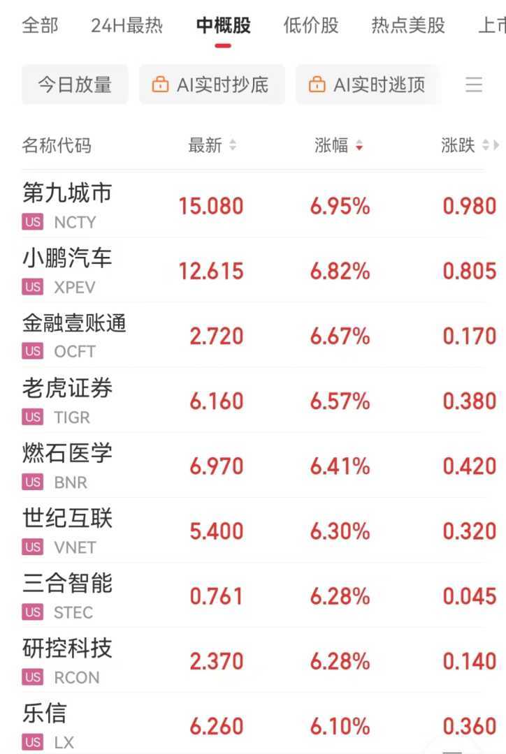 在纳斯达克中国金龙指数方面,该指数当日收涨2.1%。热门中概股普遍上涨,其中小鹏汽车涨幅超过6%,京东涨幅超过4%,金山云、哔哩哔哩涨幅超过3%,理想汽车、名创优品、拼多多涨幅超过2%,网易、百度、阿里巴巴涨幅也均超过1%。
