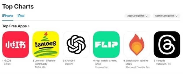 应用商店下载榜单,小红书位列第一