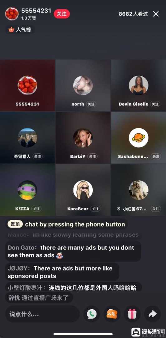 国外用户在直播聊天