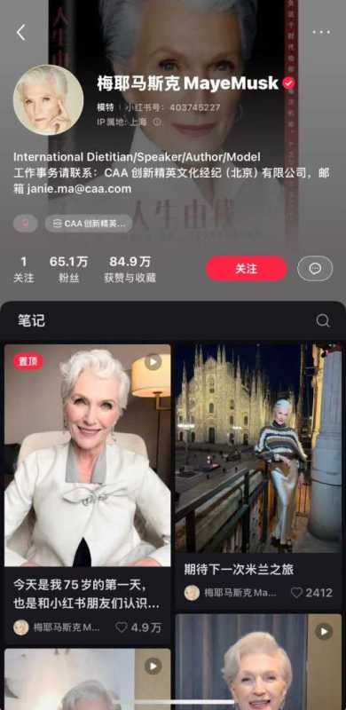 梅耶马斯克在小红书发布多个短视频