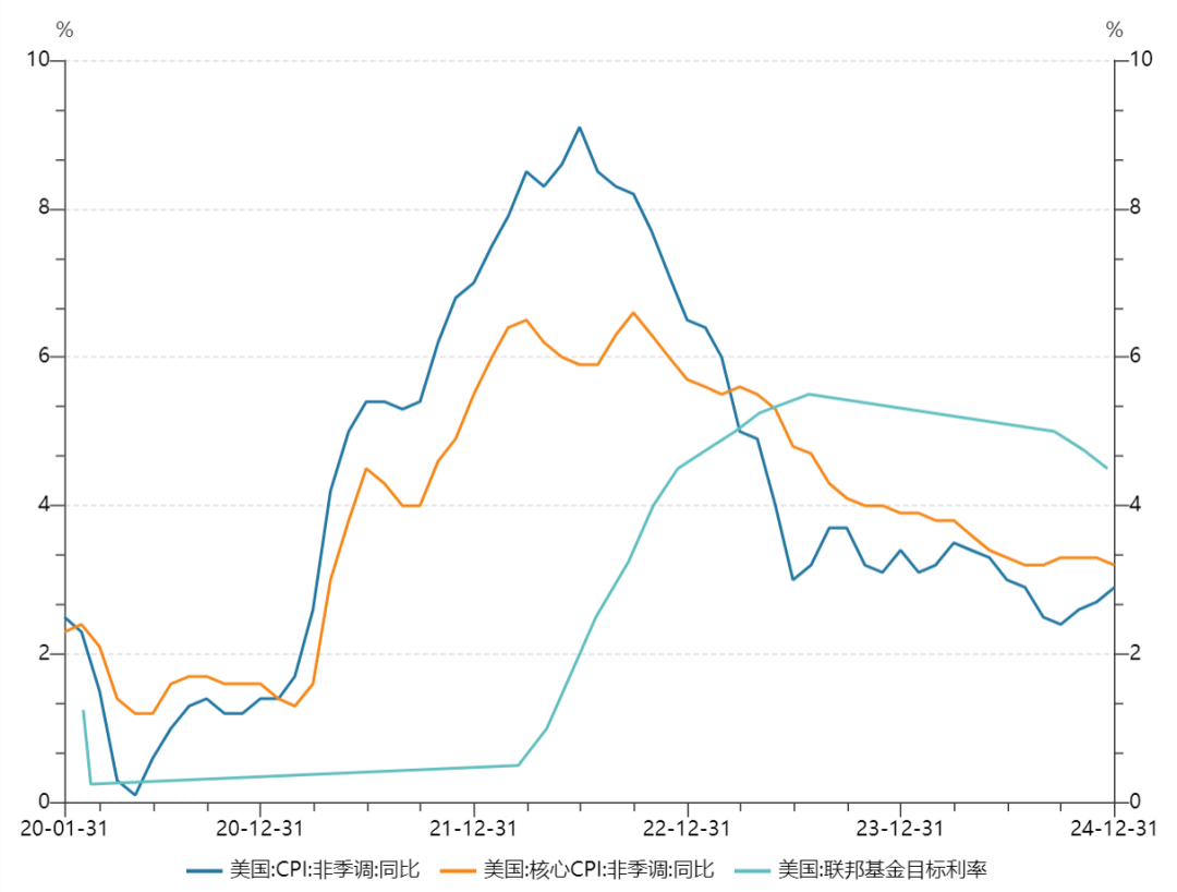 从分项数据来看,二手车和卡车CPI同比下降3.3%,住房CPI同比上升4.6%,新车CPI同比下降0.4%,能源CPI同比下降0.5%,食品CPI同比上升2.5%。高盛和巴克莱银行等机构对未来通胀走势进行了预测,认为工资增长和租金上涨将放缓,从而在未来几个月压低通胀。然而,考虑到美国新任总统特朗普可能对某些进口商品征收关税,尤其是来自中国的进口商品,以及特朗普计划驱逐数百万没有永久合法身份的移民,这些措施可能推高价格并增加劳动力成本,因此巴克莱和高盛均认为下半年美国通胀将有所回升。