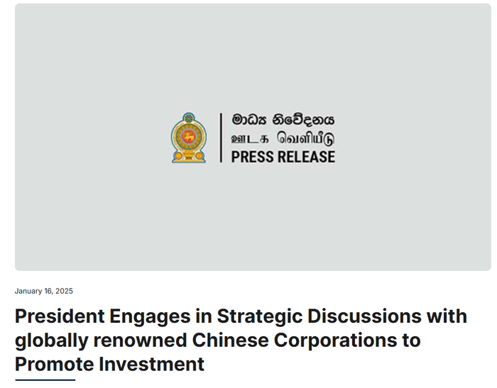 2025年1月16日,斯里兰卡政府正式对外发布声明,披露了斯里兰卡总统阿努拉·库马拉·迪萨纳亚克在访华期间的重要行程。此次访问中,迪萨纳亚克总统与多家中国企业进行了深入的战略讨论,这些企业包括在电动汽车领域享有盛誉的比亚迪、全球领先的通信技术解决方案供应商华为、基础设施建设巨头中国交通建设集团、能源化工领域的佼佼者中国石油化工集团以及实力雄厚的中国冶金科工集团。