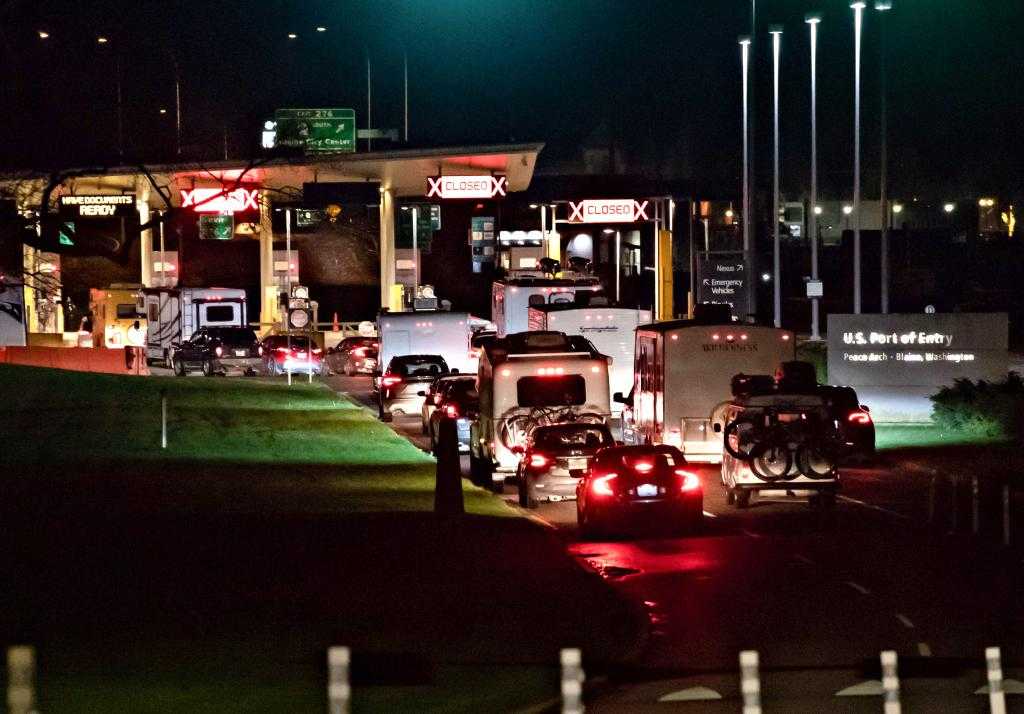 2021年11月7日,汽车在加拿大萨里准备通过加美边境。新华社发(安德鲁·宋摄)