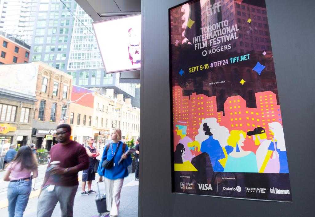 2024年9月5日,在加拿大多伦多,行人经过多伦多国际电影节的海报。新华社发(邹峥摄)