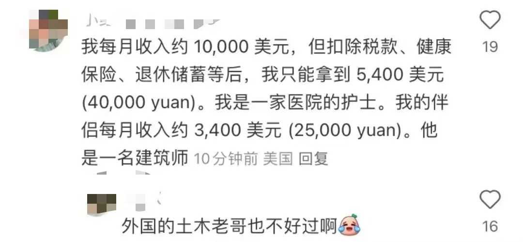 美国网友纷纷晒出自己的账单,包括医院开销等。有人直言,在医院生孩子需花费7万美元,这一高昂费用让中国网友大呼吃惊。同时,来自美国的小红书博主“尧舜禹”在与《每日经济新闻》记者的对话中,揭示了美国各州之间巨大的收入差距。她以自己所在的阿拉巴马州和家人所在的加利福尼亚州为例,指出加州是全美收入最高的州之一,而阿拉巴马州则相对较低。她强调,许多美国人一辈子都无法拥有自己的家,原因包括糟糕的信用评分和昂贵的房价。