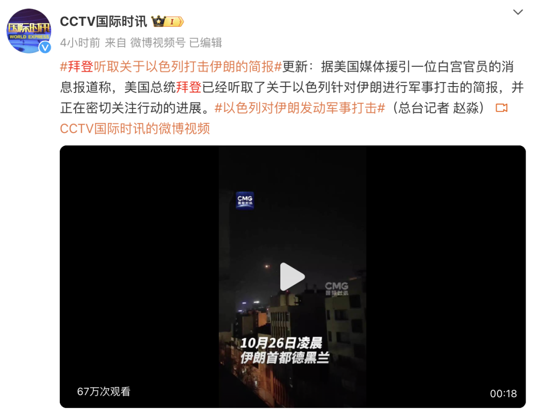 伊朗方面则表示,尽管伊朗已提前警告以色列不要采取冒险行动,但以色列仍在凌晨时分袭击了伊朗德黑兰省、胡齐斯坦省、伊拉姆省的部分军事中心。目前,该事件仍在调查中。