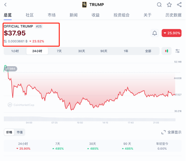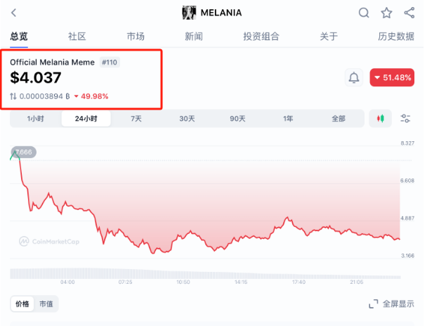 上周推出的象征新任美国领导人的‘特朗普币’在24小时内暴跌多达20%。同时,第一夫人梅拉尼娅·特朗普发布的代币在一天内价格暴跌了50%。