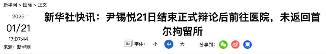 在21日的辩论中,尹锡悦坚决否认了与紧急戒严相关的所有指控。辩论结束后,他前往医院接受健康检查,并未直接返回首尔拘留所。韩国法务部对此解释称,这是基于医务官的意见而作出的决定。