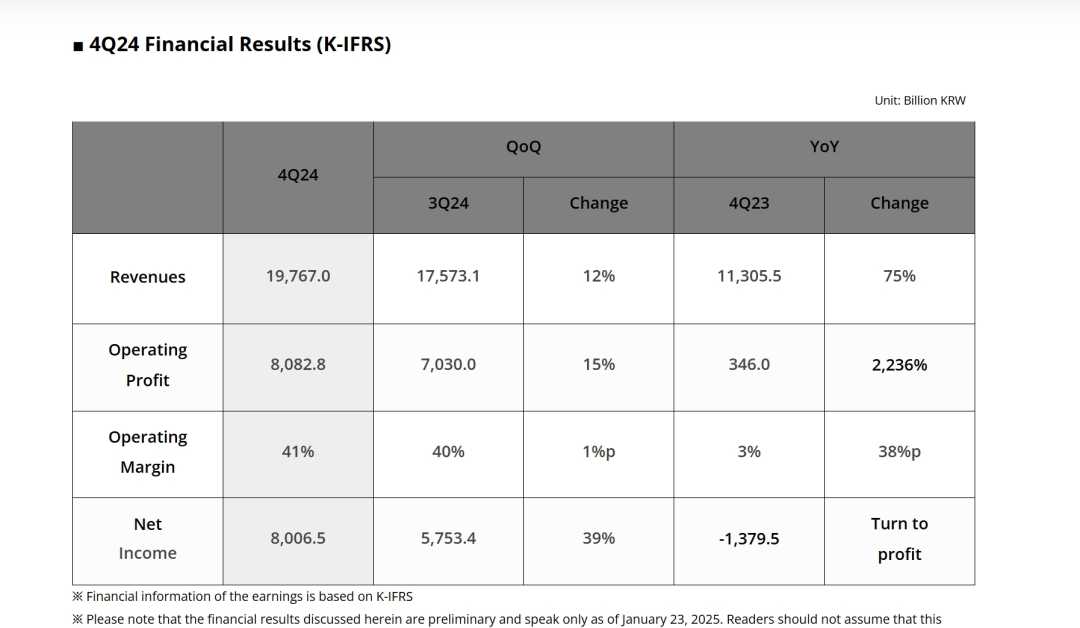 此外,SK海力士全年营收也创下了历史新高,达到了66.19万亿韩元,这一数字轻松超越了2022年所创下的21万亿韩元的纪录。