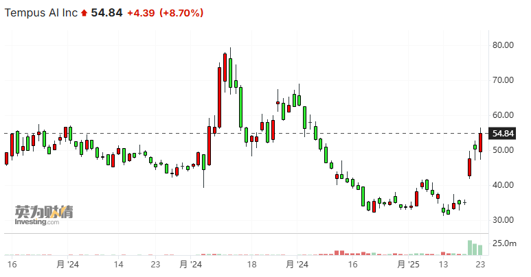 在佩洛西大手笔押注后,人工智能医疗概念股Tempus AI持续走高,当日收盘上涨8.70%。