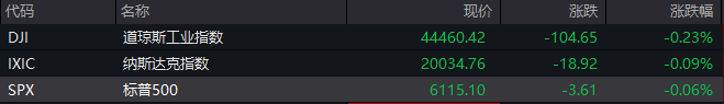 与中概股的强劲表现相比,美股三大指数当天走势出现分化。截至最新数据,道指下跌0.34%,纳指下跌0.09%,标普500指数下跌0.06%。这一走势也反映了美股市场的复杂性和不确定性。