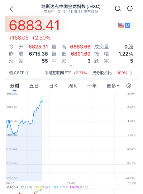 1月24日晚,美股市场开盘后,中概股指数表现出色,大涨超过2%。