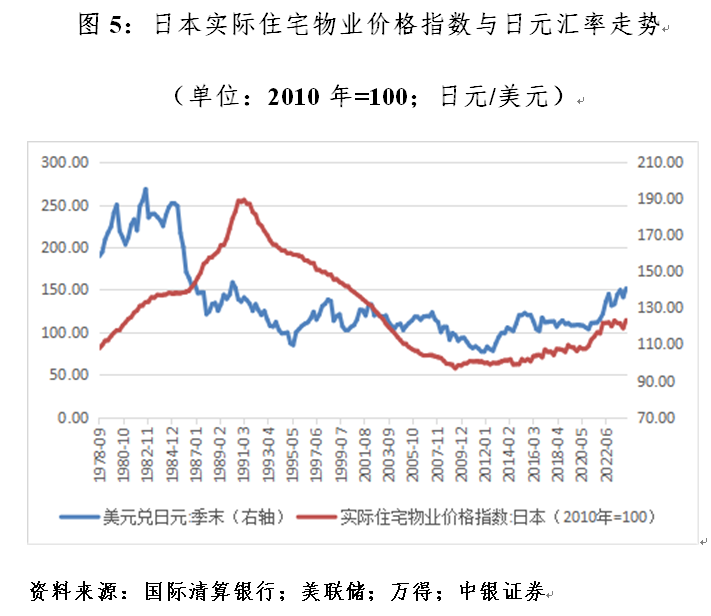资产泡沫破裂初期和后期,日元走势总体偏强。1990年初日本股市泡沫破裂,经历了长期调整,但日元汇率在初期和后期均走强。同样,1991年初日本房市泡沫破裂后,日元汇率也呈现类似走势。这表明,汇率可能晚于资产泡沫破裂见顶,却早于资产泡沫破裂触底。此外,资产价格走势与汇率的关系需具体分析,日本股市与日元汇率在不同时期的相关性有所不同。