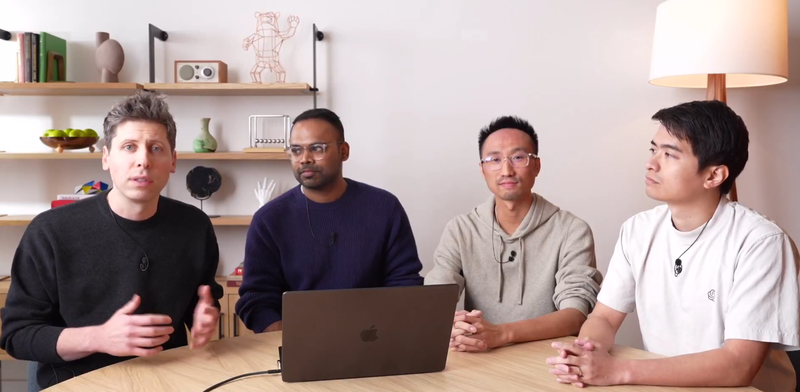 山姆·奥特曼(图中左1)亲自参与了此次直播演示,图片来源于官方直播视频截图。