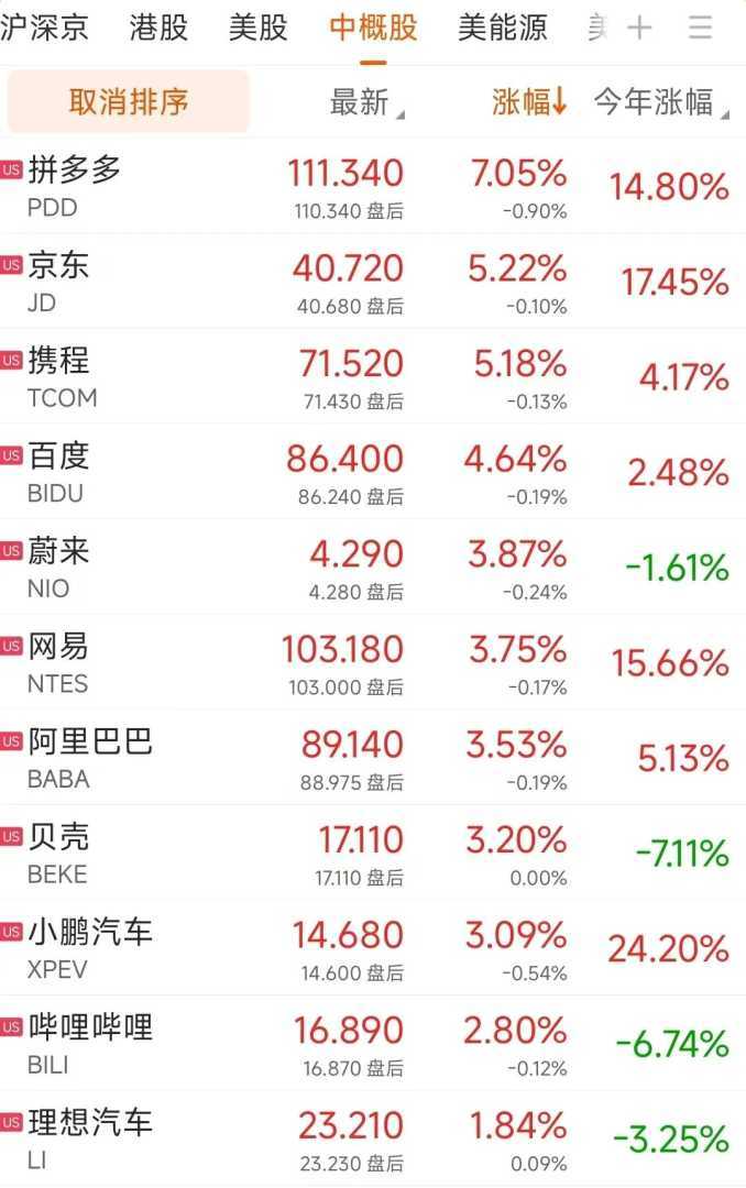 热门中概股普遍走强,其中金山云涨幅达13.1%,爱奇艺上涨11.5%,拼多多上涨7.05%,好未来、京东、携程、腾讯音乐、百度、蔚来、阿里巴巴、小鹏汽车和理想汽车等也均有不同程度的上涨。