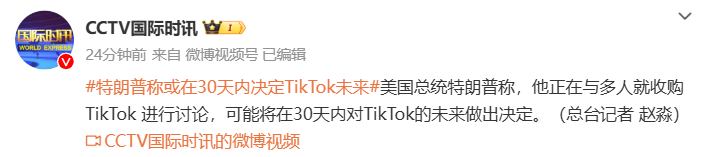 回顾此前,特朗普于20日签署了行政命令,要求短视频平台TikTok“不卖就禁用”,但该法律的执行被暂缓75天。此次特朗普的表态无疑为TikTok的未来增添了更多不确定性。