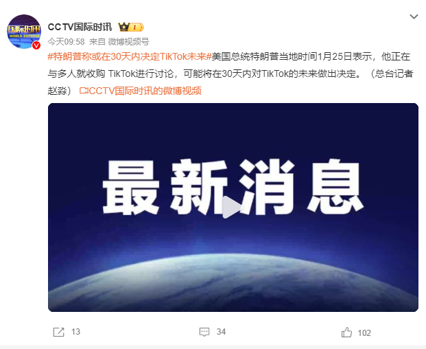 美国总统特朗普表示正与多方就TikTok收购事宜展开讨论,预计30天内做决定。TikTok方面宣布已恢复对美国用户的服务,并感谢特朗普的澄清和保证。双方正在寻求长期解决方案以确保TikTok在美国的持续可用性。