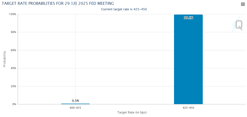根据芝商所的美联储观察工具数据显示,利率期货市场的交易员们对美联储本月维持利率不变的预期概率高达99.5%。这一预期无疑为市场提供了一定的稳定性。