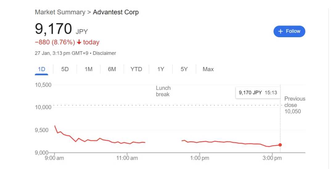 周一,作为英伟达上游的半导体测试设备供应商,Advantest的股价遭受重创,截至发稿,该公司股价已下跌8.76%。同时,东京电子股价下跌近5%,瑞萨电子也下跌了0.89%。