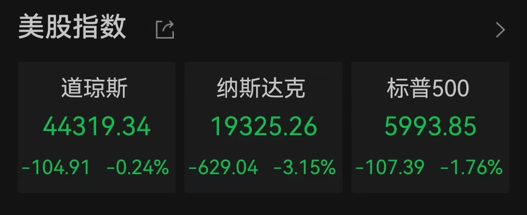 截至北京时间1月27日22:38,道琼斯指数跌幅略有收窄至0.24%,但纳斯达克指数跌幅仍高达3.15%,标普500指数也下跌了1.76%。