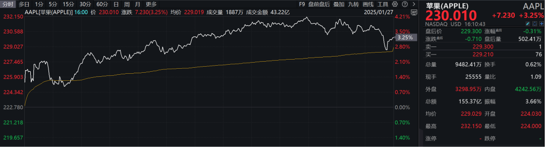 然而,在一片暴跌声中,也有个别股票逆势上扬。苹果股价大涨超3%,市值一举突破3.47万亿美元大关,重新夺回美股市值第一的宝座。与此同时,纳斯达克中国金龙指数也微涨0.11%,多只中概股表现出色,新东方、好未来、小鹏汽车、百度集团和贝壳等股价均上涨超2%。