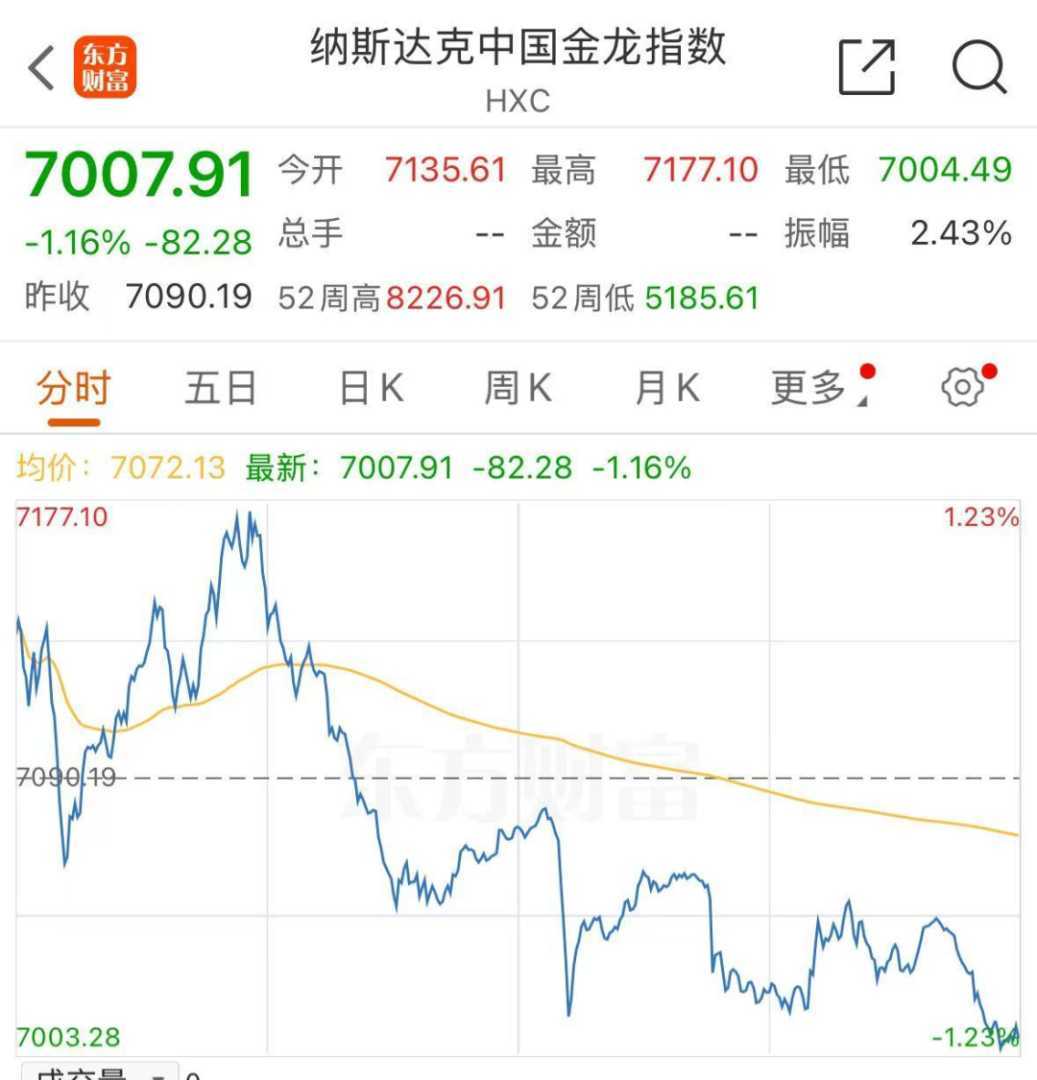 热门中概股则多数下跌,纳斯达克中国金龙指数下跌1.16%。其中,好未来股价下跌超过4%,哔哩哔哩和爱奇艺下跌超过3%,唯品会、网易、富途控股和蔚来股价下跌超过2%,小鹏汽车、京东和腾讯音乐股价下跌超过1%;而贝壳股价上涨超过1%,阿里巴巴股价则小幅上涨。