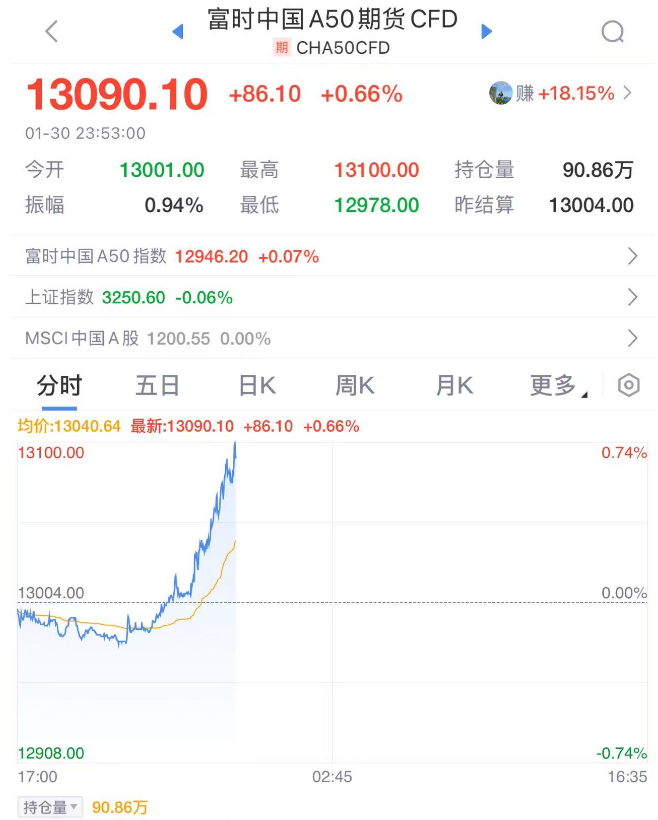 在此背景下,中概股市场表现抢眼。纳斯达克中国金龙指数持续攀升,截至发稿时,涨幅已超过3%。其中,爱奇艺股价大涨近8%,金山云涨幅也接近6%。此外,富时中国A50期货指数同样表现不俗,涨幅超过0.6%。