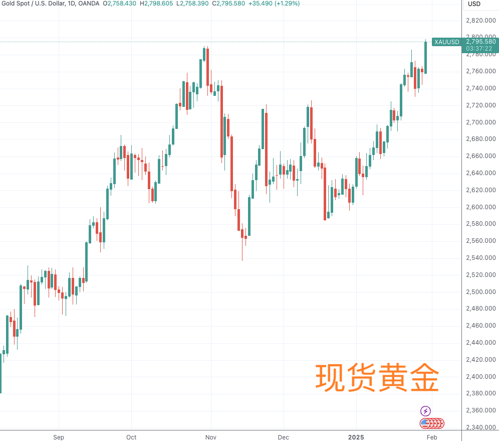 然而,值得注意的是,尽管疲软的经济数据为黄金上涨提供了契机,但真正推动投资者蜂拥而入的,还是对特朗普未知政策的避险情绪。自去年美国大选以来,黄金市场曾一度承受抛压,但随着新年的到来,特朗普频繁发布关税威胁,使得避险需求逐渐升温。