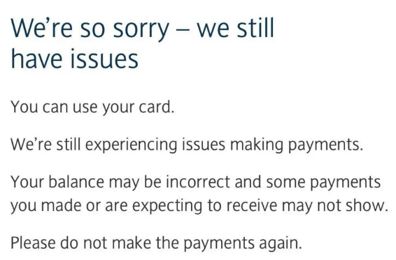 截至北京时间周日凌晨,巴克莱银行的官方网站依然挂着“很抱歉,我们仍在修复前一天发生的系统问题”的通知。