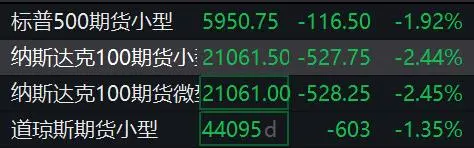 美股股指期货周一开盘即遭遇重挫,市场情绪显著降温。截至发稿时间,纳指期货跌幅已超过2.4%,标普500指数期货亦下跌超过1.9%,道指期货同样未能幸免,跌幅达到1.35%。