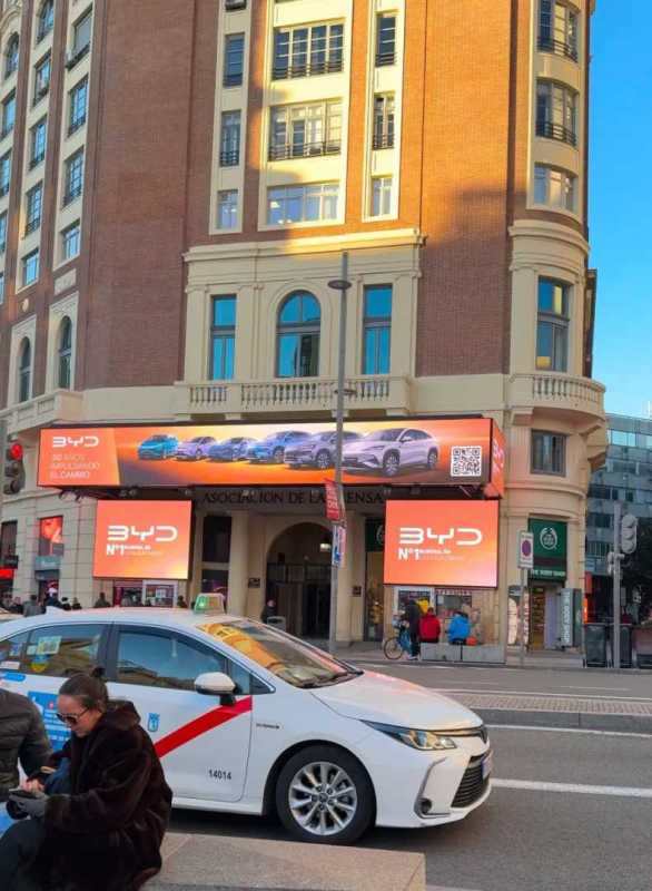 比亚迪在西班牙的布局同样深入。马德里街头随处可见比亚迪的汽车广告,比亚迪的电动车也成为了街头巷尾的常见车型。此外,比亚迪还在西班牙北部港口城市拉科鲁尼亚的机场展示了多款车型,加速拓展西班牙市场。
