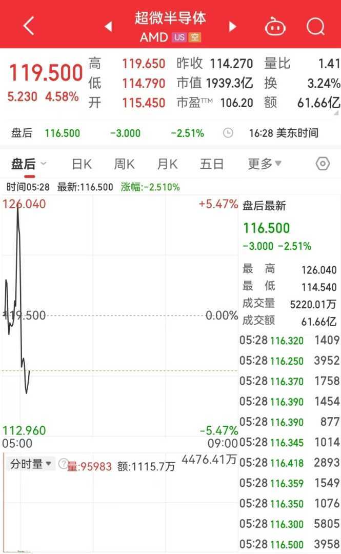 在半导体领域,AMD也发布了其2024年第四季度财报。尽管营收和毛利率均表现良好,但净利润低于市场预期。受此影响,AMD盘后股价一度上涨超过5%,随后又转跌超过2%,显示出市场对半导体行业未来发展的不确定性。