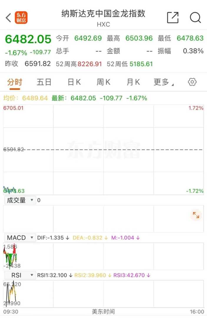 纳斯达克中国金龙指数表现不佳,跌幅接近2%。热门中概股普遍下跌,其中小鹏汽车跌幅超过4%,老虎证券、富途控股、哔哩哔哩跌超3%,理想汽车、阿里巴巴跌幅均超过2%。