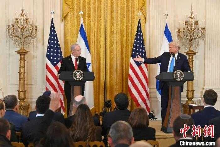 当地时间2月4日,美国总统特朗普与以色列总理内塔尼亚胡在白宫举行记者会。中新社记者陈孟统摄