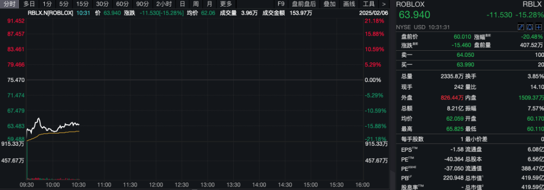 北京时间2月6日晚间,美股三大指数集体高开,热门中概股普遍上涨。然而,“元宇宙第一股”Roblox却暴跌超过15%。此外,美国总统特朗普在社交媒体上声称,巴以冲突结束后,加沙地带将被以色列转交给美国,这一表态引发广泛关注。